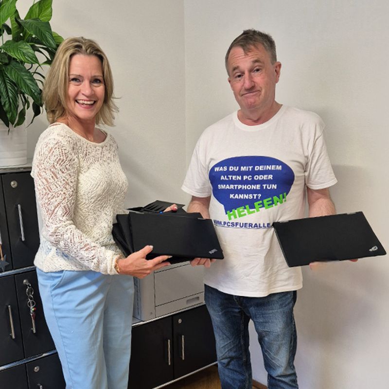 „PCs für alle” macht gebrauchte Computer, Laptops und Zubehör wieder fit und gibt sie kostenlos an finanziell benachteiligte Menschen, Schulen und NGOs, um möglichst vielen Menschen digitale Teilhabe zu ermöglichen. Mit der Übergabe leisten wir einen Beitrag zur Chancengleichheit: denn Technik soll für alle zugänglich sein. Es ist schön zu wissen, dass Hardware, die bei uns im Einsatz war, bald in Kinderzimmern und Schulklassen ein neues Zuhause findet und soziale Projekte unterstützt.